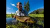 Releasing a brown trout in the waters of Patagonia in Chile. www.lavaaguada.cl