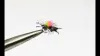 Two contrasting colours of organza ribbon wrapped over a foam body make the Super Buoyant Sedge. Long fibres stripped from the ribbon are furled to form horns to complete the imitation.
